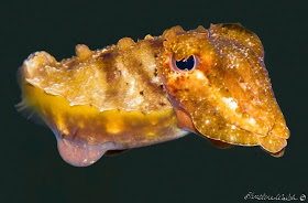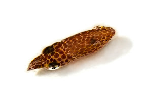 This last photo is of a juvenile Southern Pygmy squid (a close relative to cuttlefish), only a day after it hatched. It is only 1 cm long and this is a picture showing it starting to display different patterns with its chromataphores.....I call it "First Words".
