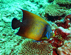 Semi circle angel fish. There use to be so many fish around Heron Island that no matter where you point the camera there would be fish. This trip was very different.....very few bigger fish. Disturbing! Heron Island is right at the southern end of the great barrier reef and takes a few hours to get out to it by boat. it is not right on the mainland coast.