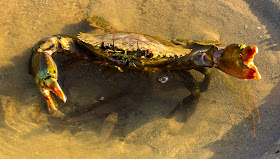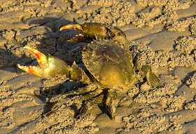 Mud Crab, Cooloola Cove. Qld. These are very good eating. They have very strong claws and would easily cut through a finger if handled incorrectly.