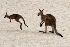 Eastern Greys kangaroos on the beach in NSW.