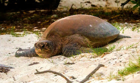 a weary female turtle makes her way back to the ocean after spending the night digging a hole and laying her eggs. Heron Island, Qld.