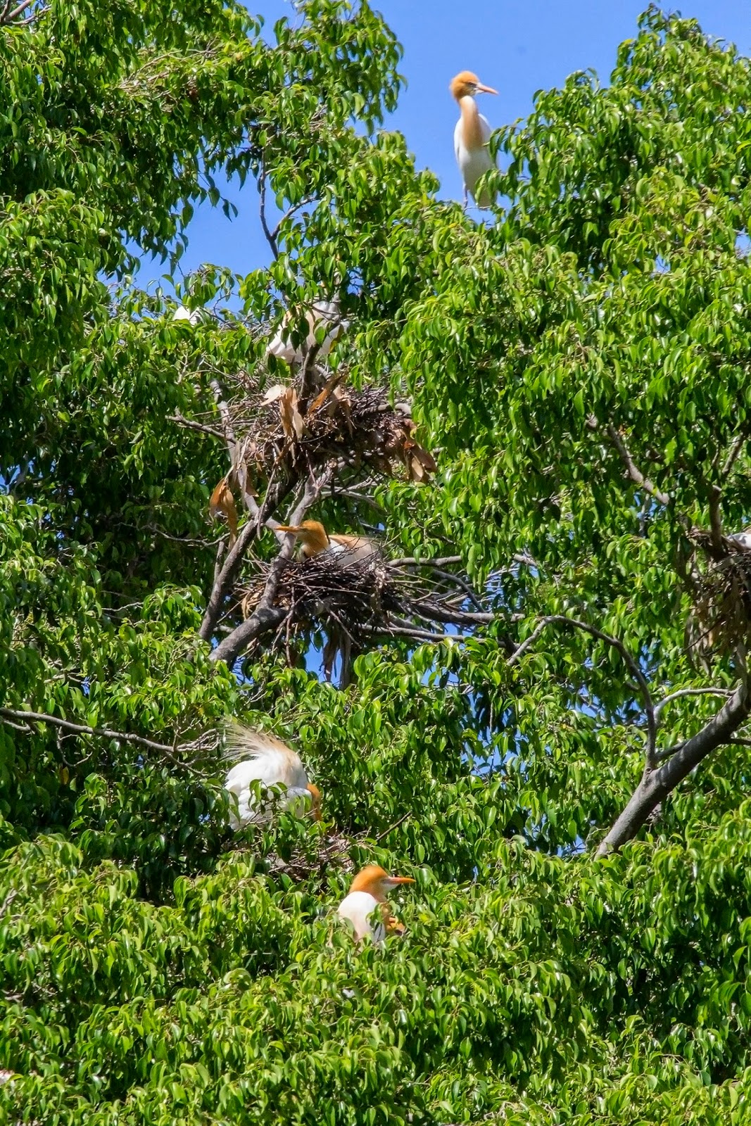 Cattle Egret with breeding plumage gathering nesting material. When they are not breeding they are all white.