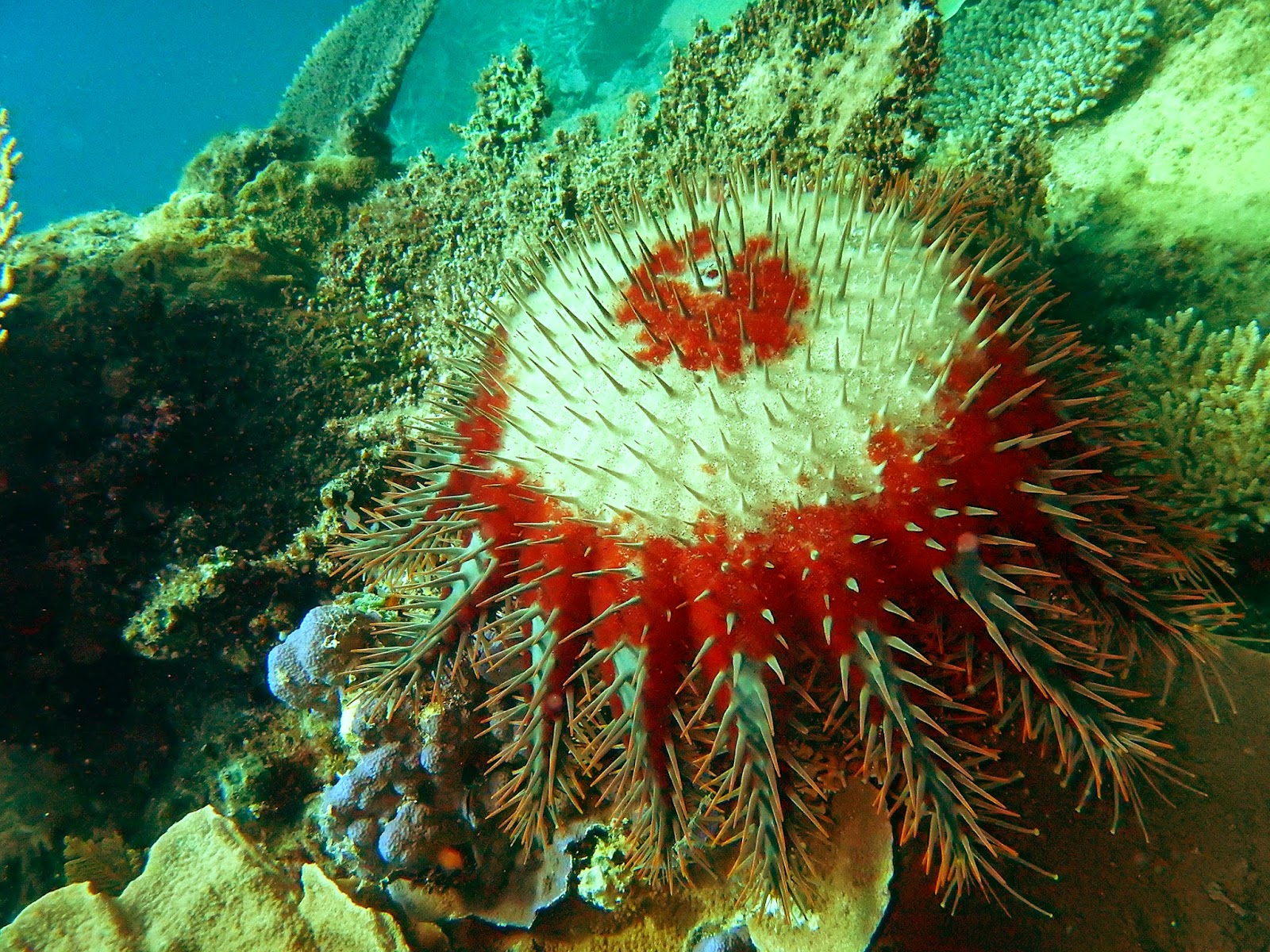 Crown of Thorns Seastar. These large sea stars eat coral. In large numbers they can be very destructive. Heron Island. Qld.